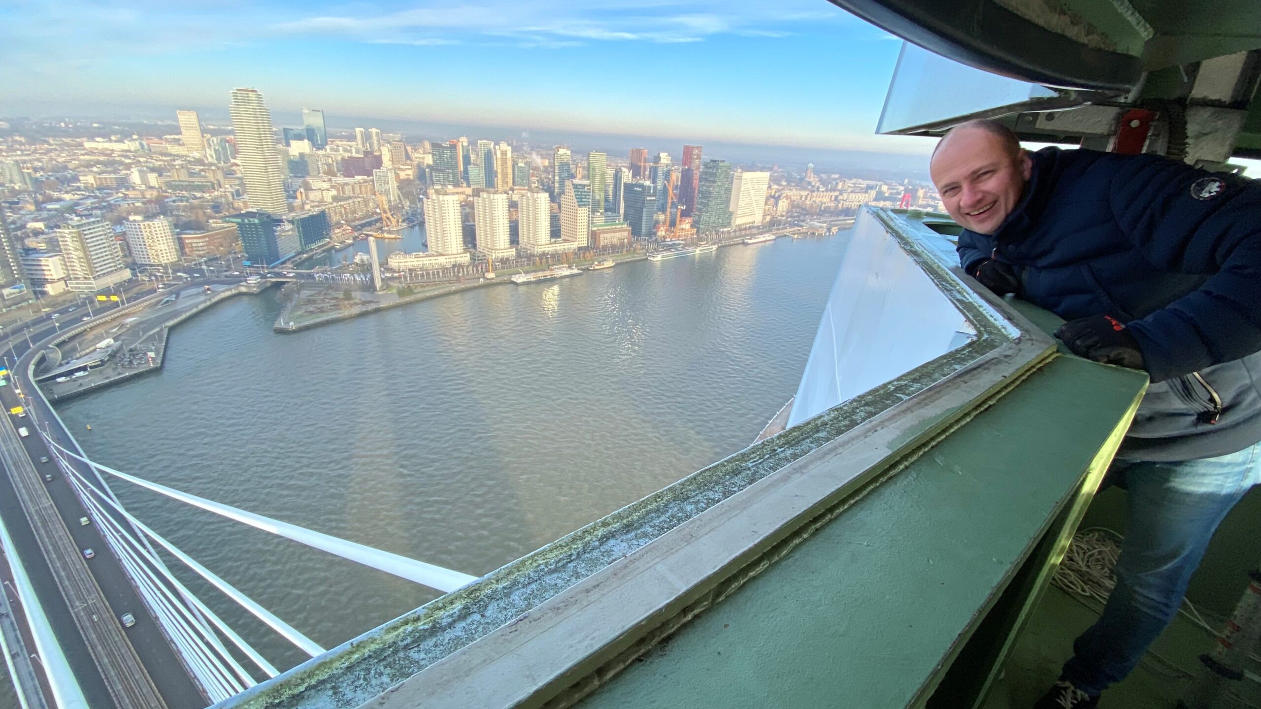 Als een immense zonnewijzer staat het beeld aan de kade; de schaduw werpt een grillige lijn vooruit. Het is een nieuw baken in Rotterdam: De vlecht van Kalliopi Lemos. Het beeld reikt omhoog aan de Westersingel, zoals een triomfzuil of obelisk, maar dan met vrouwelijke contouren. Elegant draaien de haarstrengen om elkaar heen. Hun krachtenbundeling is zesenhalve meter hoog: een stroom van energie die de zwaartekracht trotseert en waar je sneller voor gaat lopen, of je nou van het Centraal Station komt of van de tegenovergelegen Westzeedijk. De vlecht markeert de as en strekt zich op afstand naar je uit. Kom je dichterbij, dan nemen de details het over, met een miraculeus effect. Waar je net nog onwillekeurig je eigen rug rechtte met De vlecht als voorbeeld, word je nu verleid door een golvend patroon van fijne lijnen. De vlecht is meer dan een silhouet. Talloze lange, dunne staaldraden zijn geknipt, gewelfd en gebundeld; elke haar is er één. In hun samenspel zit veel reliëf en dynamiek. En ook warmte. Het licht danst over het bruine haar, glanzend aan de oppervlakte, schemerend in de diepte. Eerst word je ernaar toegetrokken; vervolgens dirigeert De vlecht je in de rondte. The devil is in the detail – je ontwaart zelfs een rossige gloed.